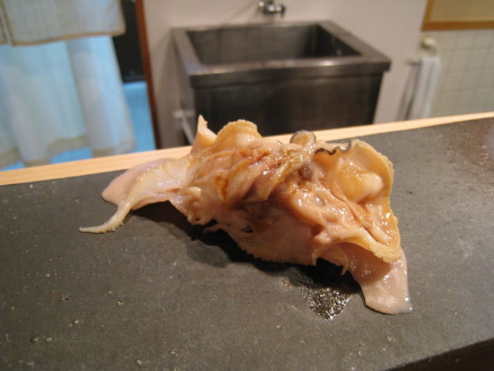 次の写真は 私のお気に入りの一品 煮ハマグリ そして私の友人でもありP仲間でもある 大将です (若く見えますがいい年です)
