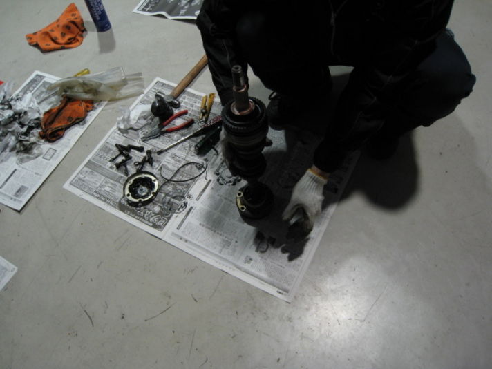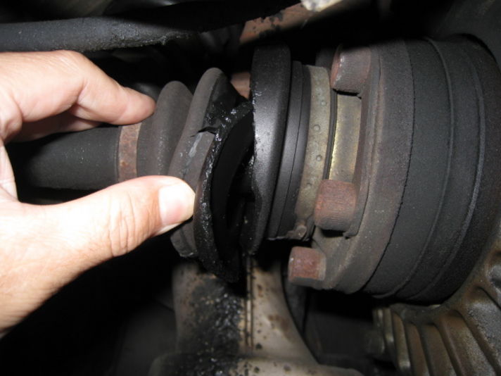 写真でお解かりいただけると思いますが エンジンは珍しく本当にオイル漏が有りません (エンジンが乾いています)しかしまん中の写真のドライブシャフトのブーツが破れているので