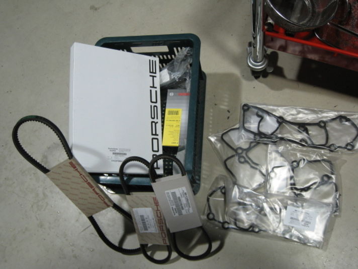 今回交換するある程度の部品の写真です すでにチェーンケースのパッキンは初日に交換しました ポルシェは964〜993にタイプが変更になったときにオイルフィルターもシングル〜ダブルに変更になりました 964までポルシェはリフトを使わずにオイルフィルターが交換できました993は写真で解るところエンジンの後ろ側のオイルクーラーの横と右リアフェンダーのタイヤハウスのカバーを外したところの合計2個付いているのでリフトなしでは 少し難しくなりました 当然クレヨンの納車整備では二つとも交換いたてします これで 新しいオーナーのメンテの目安になります 貴方のポルシェのオイルフィルターはいつ交換したか お解かりですか?