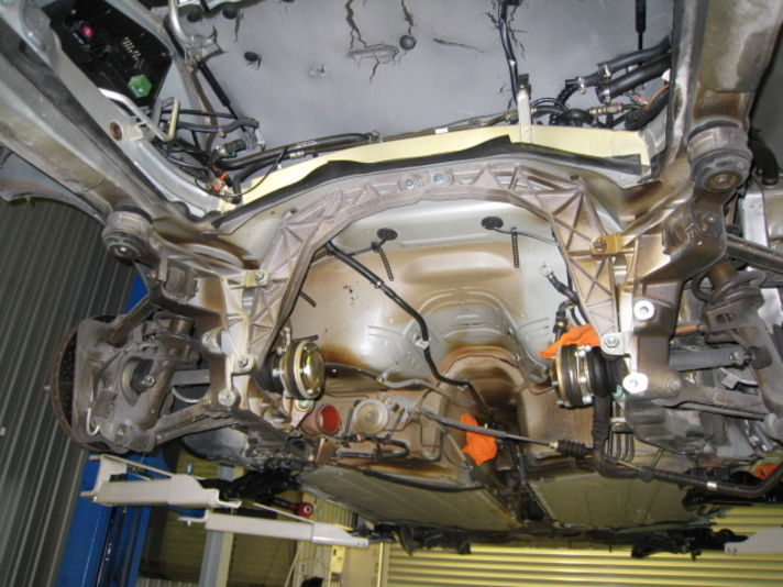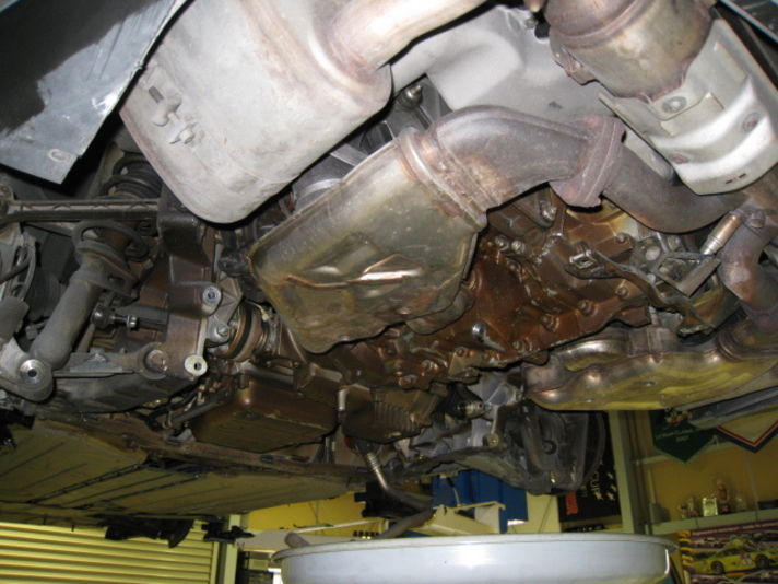 まずエンジンを下ろす準備で各オイル類を抜き取っていき エンジンを下ろします 最後の写真はエンジンが下りたときの下から見た写真です