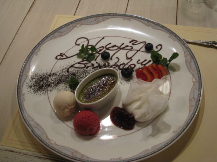 昨晩は私の家内の4?才の誕生日でこのオステリア ハタさんに行きました そして オーナーに今日は家内の誕生日だお話をしたところ 写真の最後のデザートにハッピーバースディーの文字をサプライズでだしていだいたのは家内も 感動していました このほかに色々なお料理を沢山だしていただいたのですが あまりの多さに 写真に全て載せることが出来ないので是非皆さんお店を探していってください オーナーシェフは大柄で少しこわおもての方ですが.とても優しく気の付く方です 電話077-553-2337車で行かれる方はセブンイレブンの横ですので セブンイレブンで何か買って車を止めておくのも良いかな(笑) こじんまりしたお店なので 電話で場所聞き.予約をしてから行ってください ランチは2500円〜 ディナーは6500円〜 京都 滋賀でこの味を提供してもらえるお店は.私は知らないほどの美味しいイタリアン?です |