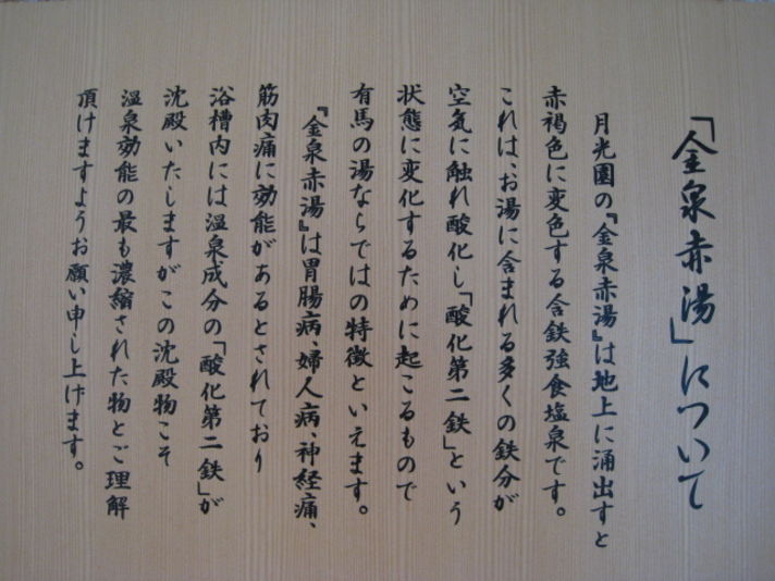 今回紹介するのは 有馬温泉月光園の湯ったり昼食 松花堂弁当コースの 税込み サービス料込み 入浴料込み 6200円です 時間は11時から15時までの四時間限定のコースで月光園内のお風呂に入りお昼を食べるコースです フェースタオルサービス バスタオル無料 館内着(浴衣)無料の手ぶらで行けるお気軽コースです 事前に予約すれば 部屋付きで価格は6200円のままのお徳です 私は 当日の朝の電話予約なので部屋なしでしが まったく問題なく気持ちよく過ごせました お湯は金泉です 詳しい内容は写真を拡大して読んで下さい お風呂は三箇所あり 大浴場そして私がはいている大浴場横の二階の露天風呂と最後の写真はホテルの裏川を渡った所に隣接している露天風呂です ちなみにお客さんの男は私一人でした お湯の温度も38度〜40度前後と入りやすく 長くつかれるので私には良いと思います パート2では あまり期待していなかった 松花堂弁当で!お話し.....