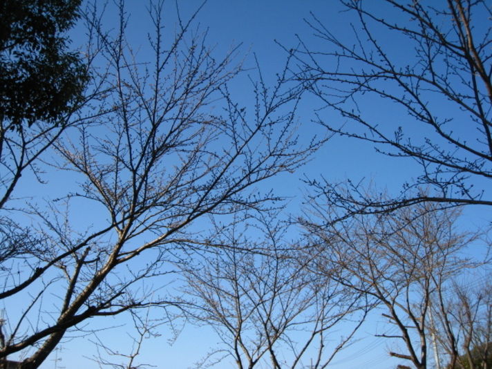 まずは 毎年いち早く咲く桜の木が写真のクレヨン裏側の横の木