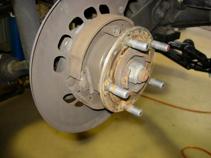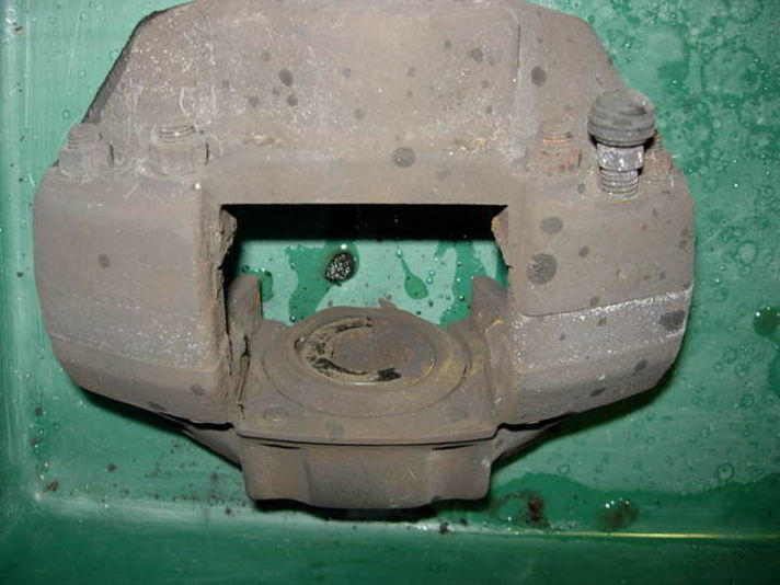 エンジン搭載し、駆動系、制動系をチェック TMオイル交換 リヤブレーキに問題です、キャリパーの動きが悪くパットがディスクを引きずった状態です。キャリパーのピストンがスムーズに動かないのが原因、取り外して状態を確認して対処します。