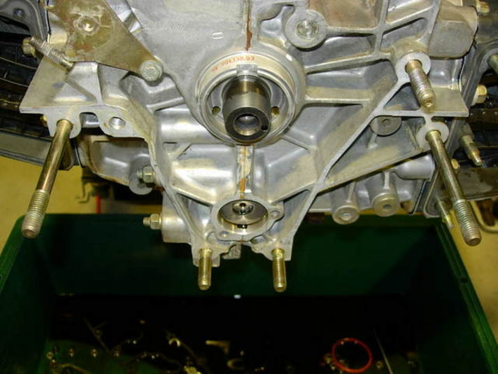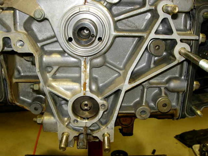 下に見えているのがオイルポンプを駆動するためのシャフトです、Oリング付きの蓋があり、よくオイルが滲んできます。