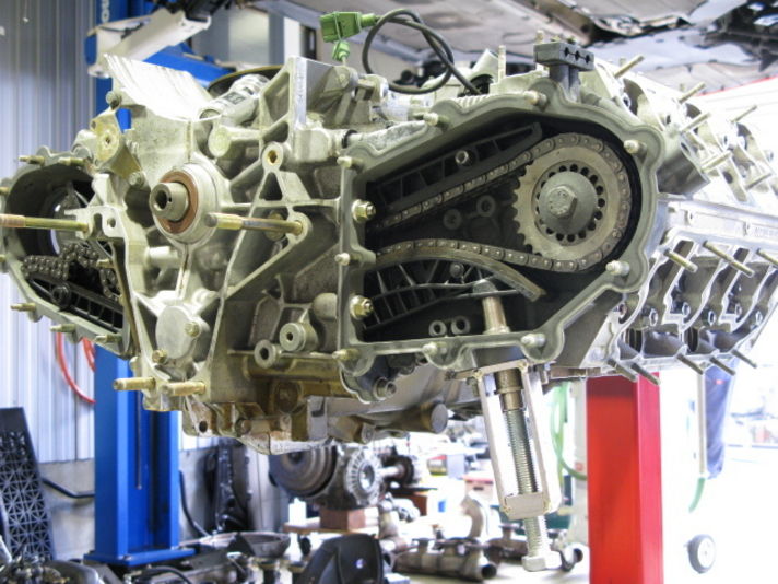 シリンダー&ピストンが組みあがり 今日はその上の部分のカムハウジングを組み付け中にカムシャフトを入れてカムギャーとチェーンを張ります 細かな調整は木曜日から行うため ほこりが中に入らないようにチェーンケースのを仮止めします クレヨンのサービス部門は今日から7日水曜日までお休みですから...........メカニックの気づかい..... ショールームは頑張って.私と販売スタッフとでGWは明けています(7日水曜日は定休日でお休みです)