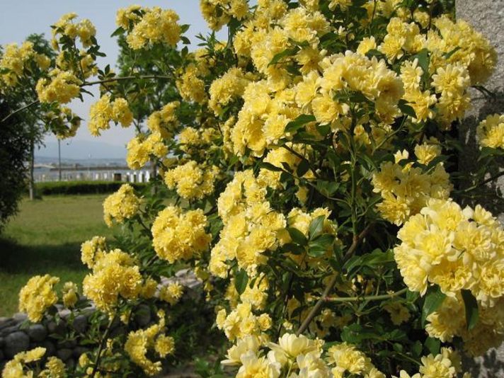 そして 自宅の近くのびわこホテルの前には モッコウバラ ハナミズキ ツヅヂが咲いていました そして良く見ると蜂が私が写真を写しているのに