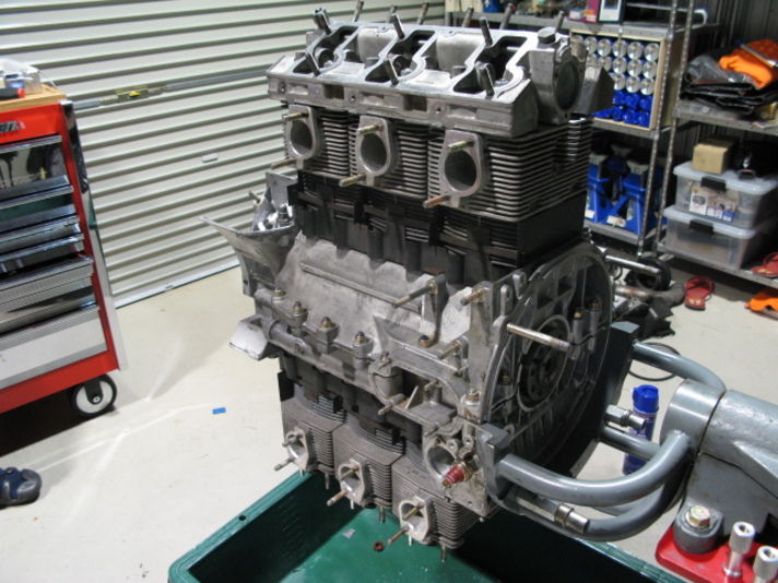 クランクケースが組みあがり シリンダー ピストン ヘッド を順番に組みつけていきました 私は手先が不器用なのでこのような作業を出来るメカニックに(@_@)しています
