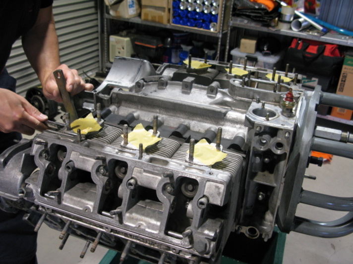 ヘッドの上の部分のカムハウジングを組み付け 中にカムシャフト カムギャーを入れてタイミングチェーンをはっていきます