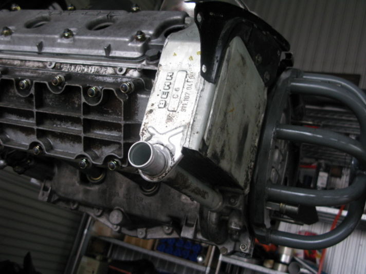 エンジン本体が組みあがり 周りの物を取り付けていきます 手前に見えているホースはカムホースです 真中の写真はエンジンの後ろ側のオイルクーラーです ナローや930の初期モデルはこのオイルクーラーしか付いてなく フロントのオイルクーラーがオプションの時代もありました 私の74カレラも新車当時装着されていなく オプションで付けられたと聞いています......昔は渋滞 停滞も無くフロントのオイルクーラーも要らなかったのですね(笑) |
