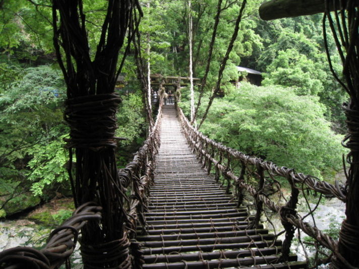 家内の友達がお勧めのスポットが写真のかずら橋です 大自然の中にゆらゆらゆれながら渡るとてもスリリングな橋です