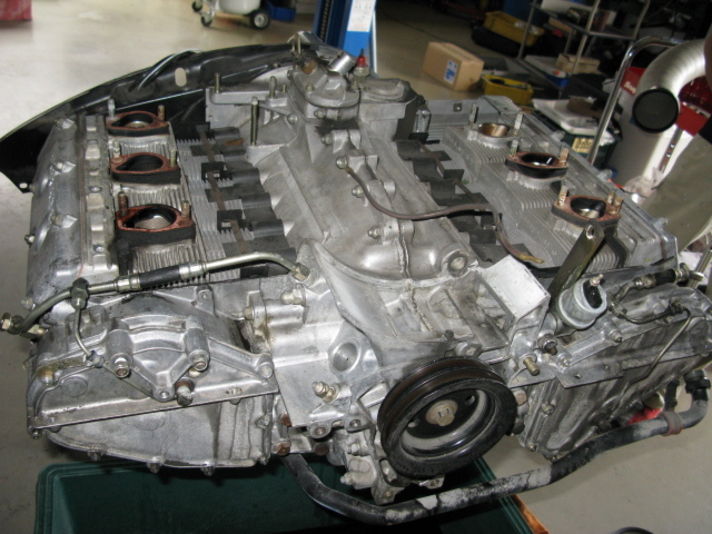 エンジンが降ろされ ミッションと切り離され エンジン単体を