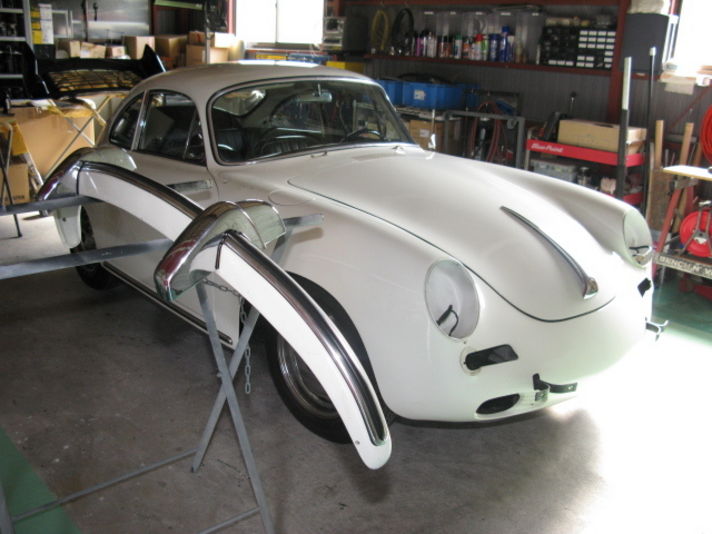 フロントバンパー ライト類を外した....色白の356はとっても可愛く見えるのは.......私だけですかね.............(笑)