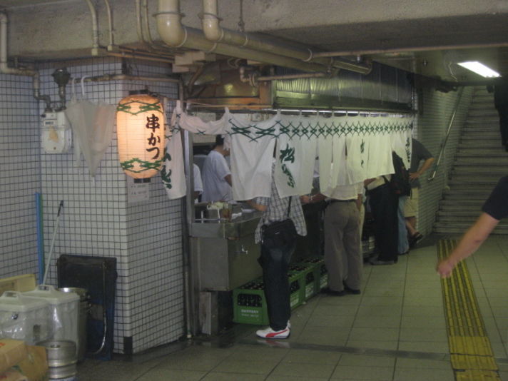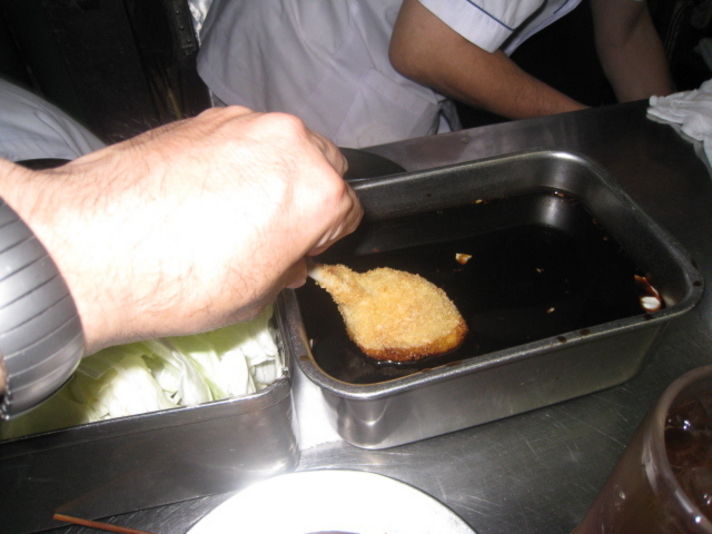 今日は朝からポルシェのホテルショー電車で行ったのは......久々に....... 元祖二度漬けお断りの串カツ屋....松葉で昼ごはんを頂くためでも有ります (私の頭の中には ポルシェと食べる事しかないのかも(笑)) このお店はJR大阪駅〜地下鉄御堂筋線の改札の近くの 階段の上がり口付近に.....あるお店です.....立ち食い........立ち飲みのお店です のれんをくぐるのに勇気が少しいります.......最近ではテレビなどで紹介され....以前に比べると行きやすくはなりましたが......そんなお店のメニューで私が一番のお気に入りは 写真の若鶏です..... 鶏肉の手羽本を開きそこにカレーペーストを入れてる このお店では1番手のこんだ串です 値段1本100円前後でキャベツ食べ放題で1000円あればお腹がいっぱいなります 是非みなさんも大阪駅に行く事があれば 少し勇気をだして カレーペースト入りの若鶏の串カツ食べてみてください