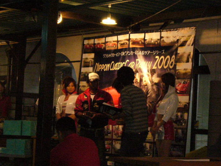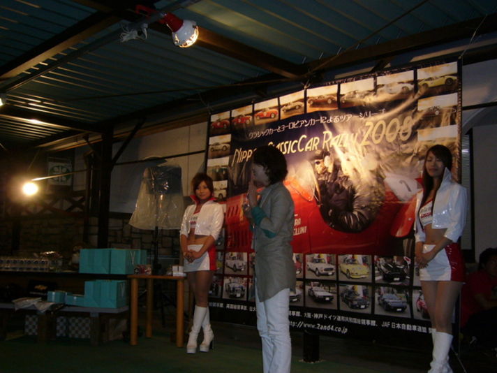 朝9時30よりスタートして夕方6時前後に全車無事フィニッシュしました (後で解った事ですが 新名神でPに追跡された方が居られたみたいでした?) そして表彰式&好例のジャンケン大会です 左端の写真は.....今回唯一の 女性ドライバーに特別賞(1964年356Cでの参加)皆さんから盛大な拍手 そしてまん中の写真は総合優勝された方の表彰式です 昨年に引き続きプレゼンターの2005年2007年のPCWRCP世界ラリー選手権チャンピオンの新井 敏弘さんから盾をもらう総合優勝者 最後の写真は全員参加のジャンケン大会の様子です.............. 今年は全員のドライバーに滋賀美味しい物を皆お土産を持って帰ってもいました また色々なメーカーの方々から沢山の景品も提供していただき 和気あいあいの楽しい滋賀ラリーを無事終わることができました