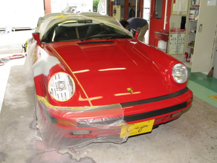 993GT2に続き今度は またもやスペシャルナモデルのリフレッシュをいたします ところどころにある エクボなどはデントで直しますがオーナーが不注意に ガレージのシヤッターに右フロントフェンダーをこすられたの塗装をする事になりました そして スピードスターのトレードマークとも言える リアーのホロカバー はFRPで作られているので 少しホロですれていたため綺麗に塗りなおす事に しました やはり 数の少ない貴重な特別なポルシェやはり 見た目は綺麗でないと 私はいけないと思います................ |
