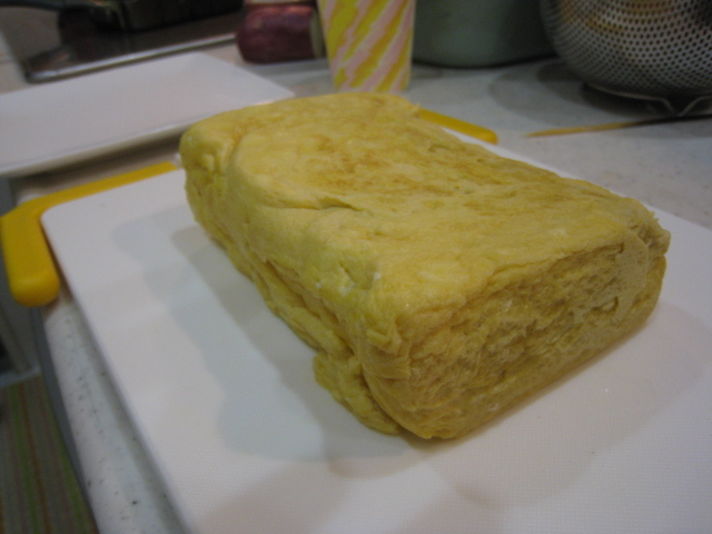 そしてもう一品はやはり.....玉子焼きです............これは自分の得意料理なので作りました 作り方はだし3 卵7の割合で巻いて行きます