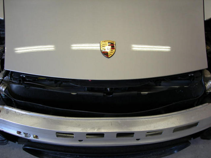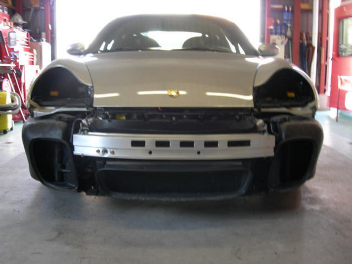 今回写真に写ているポルシェは996GT2のバンパーを外したところです 拡大してみていただければ 良く解かると思いますがカレラなどのポルシェは バンパーを外してもラジェター回りなどにこのようなトンネル型のダクトは付いていません 最高速が310キロ以上で走るGT2だからこそ このような空気を上手く操るダクトが付いています 二番目の写真から取り入れた空気を三番目の写真のダクトから空気を抜き冷却とダウンホースを生み出していると思われます さすが諸費用入れて新車が 3000万円近くするGT2色々な箇所でノーマルとは違う隠し技が仕込まれています |