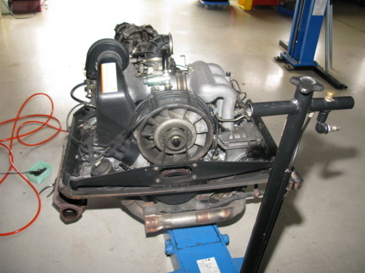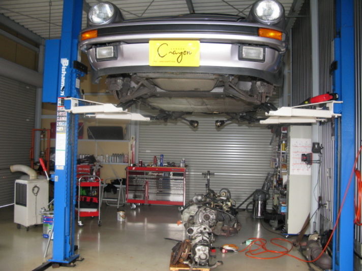 この場所はエンジンを降ろさないと修理不可能なので このようにエンジンを降ろしての納車整備となります..........