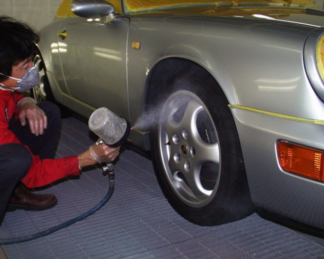 下地の処理が終わったところでいよいよ コーティング剤(カラス系)を吹き付けます