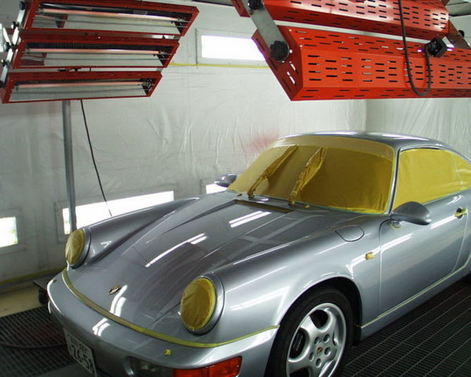 写真でお解かり頂けると思いますが 遠赤外線でコーティング剤を焼き付けて行きます