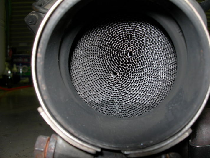 930ターボ時代小さな消音機マフラー程度のものでした。環境に非常に悪い事間違いなし・・・しかし、964ターボになり、なんと触媒が納められるようになり、環境にも配慮されているようです。左右二本出しになっている、左側にウエストゲートからの排気、右側よりメインの排気が出るようになっています・・・ここにも改良・改善の手が!!