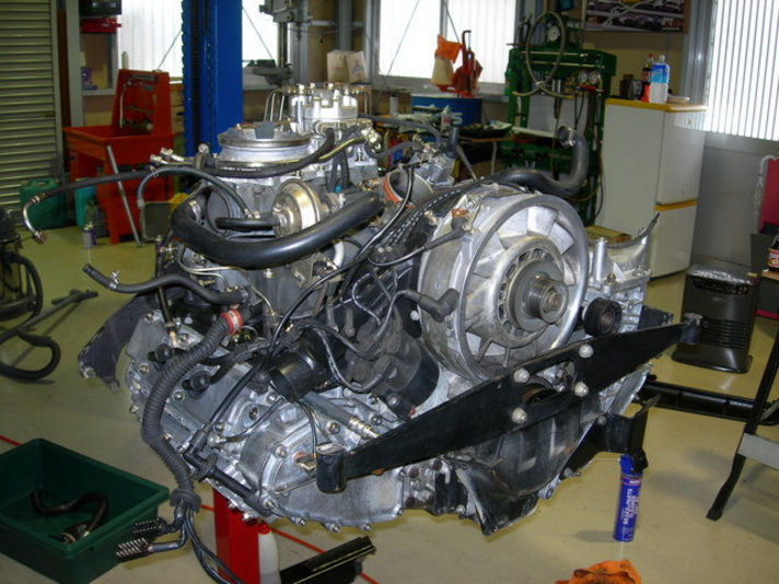 エンジンスタンドから降ろし、ボディへ積み込み準備です。