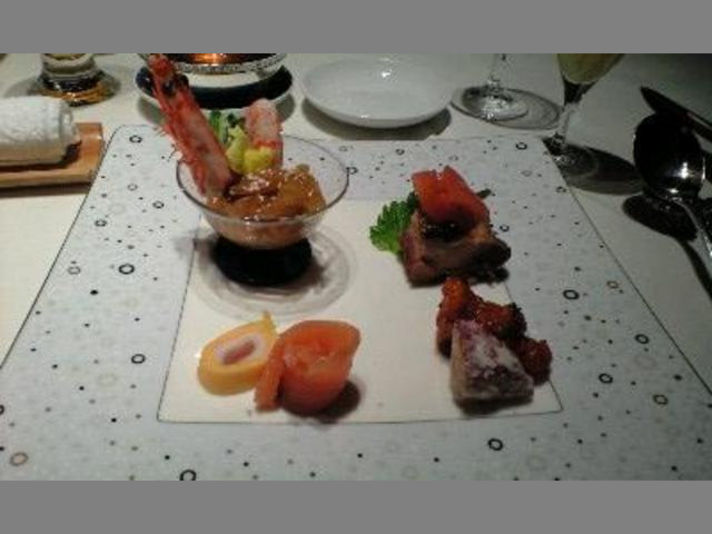 先日家内の誕生日なのでちょっとリッチに滋賀の瀬田川沿いにあるロイヤルオークホテルの中国料理をいただきました。 以前からここの中国料理は美味しいとうわさの店ですが、なんせ高級なため行く機会がいままでありませんでした。 事前に席の予約を電話ですることにしました。 左の写真は個室の写真です。 今回ははりこんで娘が部屋代(1050円)を出してくれたので個室になりました。 料理の説明です。 まずは真ん中の写真が前菜です。 ここの中国料理は目でも楽しめて、雰囲気はすこしフレンチっぽく油っぽくなく、なんとなくヘルシーな軽い中国料理です。 右の写真は二品目のフカヒレスープです、追加の一人3400円払えば姿煮になります。 (家内の誕生日なのではりこみました まあ理由はありますが) 実はお店に行って気づいたのですが、誕生日祝いで来たとお話するとコース料理に限りお一人様無料とのことです。 ラッキーラッキーラッキー! 私の頼んだコースは10,000円のコースです。 つまり二人で10,000円のコースです。 サービス料は別途いります・・・