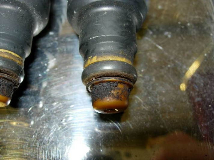 インジェクターの汚れってこんな感じです。汚れの原因はさまざまですが、きれいにして、Oリングも交換です。インテークの中もガソリンのかからない所はこんな感じで黒く汚れています。