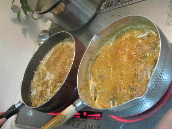 左の写真からわかっていただけるように、私が手伝う事は真ん中の写真の出来上がったいかなごをうちわであおぐことです。 味見しましたが、かなり大き目のいかなごでしたが、心配していた内臓の臭み、硬さなどまったく問題なく美味しく炊き上がりました。 隣の県のO氏・・・先日飲んだ勢いで上手く炊けたらおすそ分けすると言ってましたので、よければ今週にでも取りに来てください(笑) 今年はいかなごをゲットできました。