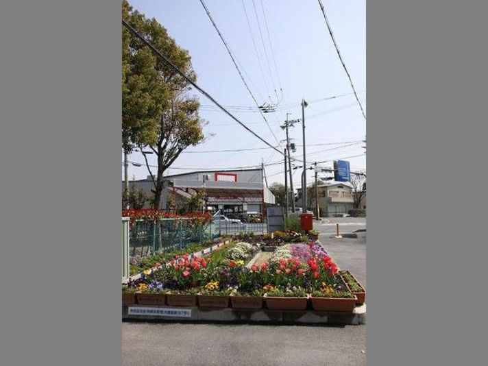 右の写真は横の公園の前に町内の方が綺麗に花を植えておられます。