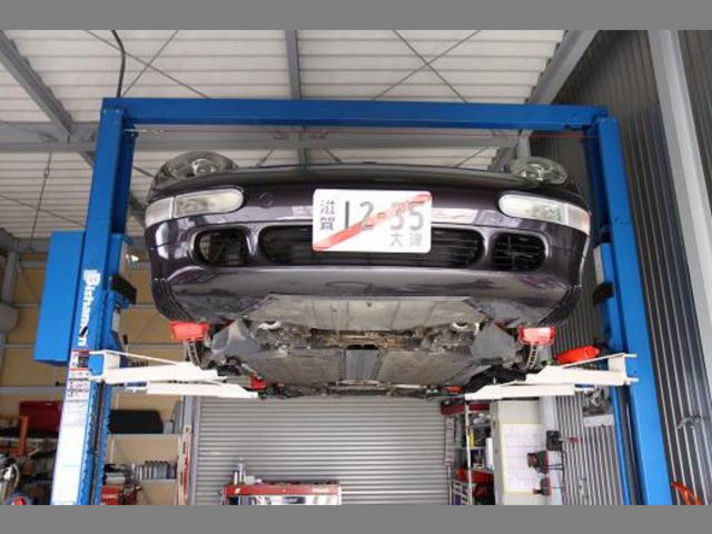 そして写真でおわかりいただけるようにリフトにあげ、タイヤを外し、アンダーカバーを全て外します。