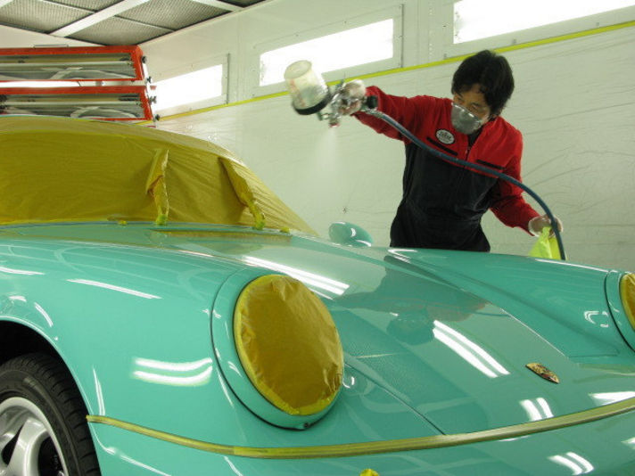 がんばってクレヨンの匠が、納車の時のオーナーの笑顔を思い、心をこめて 施工しています