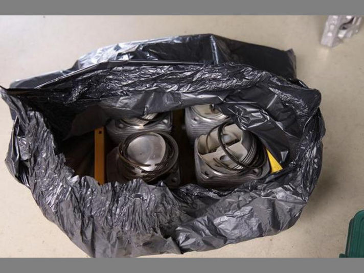 左の写真はピストン、シリンダー、リングなどの洗浄が終わり