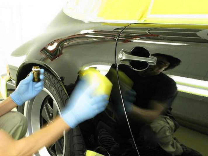 クォーツガラスコーティングの施工が終わり、これからがWコーティングの由来である三社のコーティング剤の中から色、塗装の状態を合わせて適切な物を上から再度施工いたします。