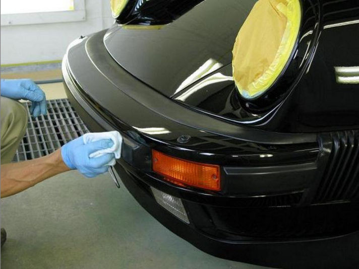 また、今回は930のホイール、モール(ゴムロール)、タルガの象徴である部分など経年劣化により白くくすんでいるのでその部分はB社の溶剤を使って新たに施工いたします。