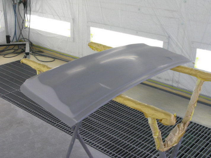 研ぎ上げが完成致しましたら、ボディ同色シグナルグリーンに塗装して行きます。