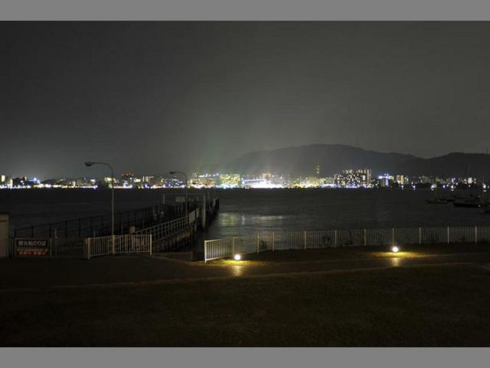 真ん中の写真 食事をしている場所から見える浜大津港の世界一長い噴水です。(きれいでしょう)
