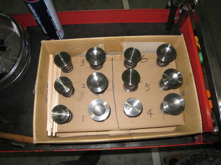 磨き終わったバルブを、ヘッドに仮組し、ヘッドバルブシートとバルブの当たりを見ながらすりすり・・・バルブスプリングの高さ調整も6個の均整を見ながら規定値へと ”クレヨンいとう”