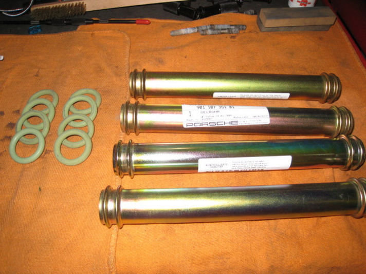 オイルリターンチューブは、伸縮性のリペアパーツが付いていたため、新品のチューブを装着です、ピカピカと光り、ディーラーステッカーが貼られています、このシールを剥がすのが意外と手間の掛かる作業なんです。