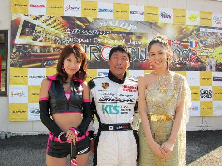 真ん中の写真が私ですが、その両脇の写真は今回のポルシェレースでの総合1位、2位の私の仲間です。