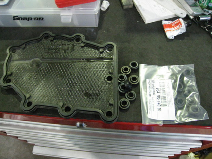 新オーナー様 今日は、カムカバーを開けバルブクリアランスの調整です。機械式調整ですから定期調整が必要になります。チェーンケースカバーを開け、ゴム製のガスケットを交換です、カバーとケースの間にゴムパッキン・カバーを止めるナットにはゴム製のプレッシャーリングでパッキング!