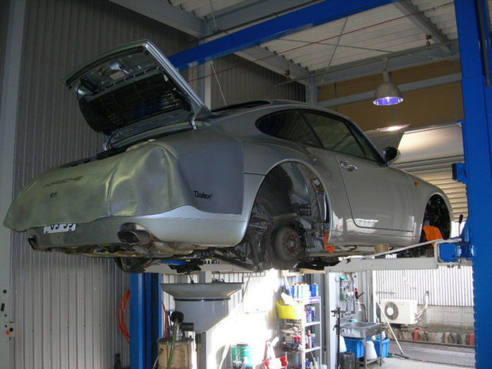 リフトに載せオイルを抜きながら各部を点検していきます。