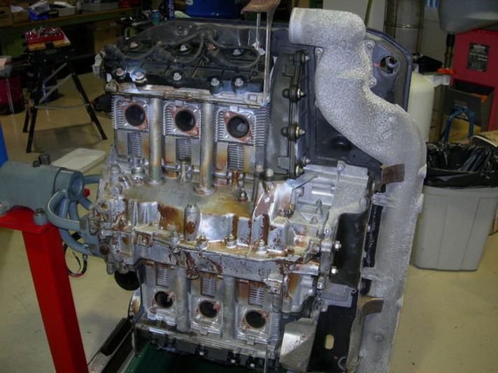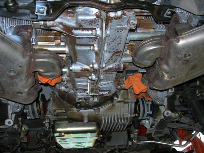 事前にカムハウジングからのオイル漏れは確認していますので、エンジンを下ろしながら点検します。