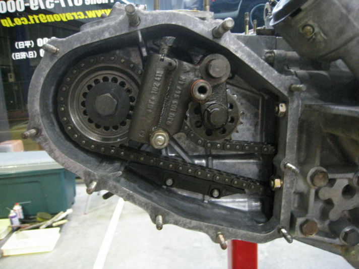 右端の写真は、3.2カレラのチェーンの取り回しです、964と比べるとずいぶん違いが有ります・・・964になりシンプルです。回転のロスやずれなどを少なくするように変更したのでしょうか?