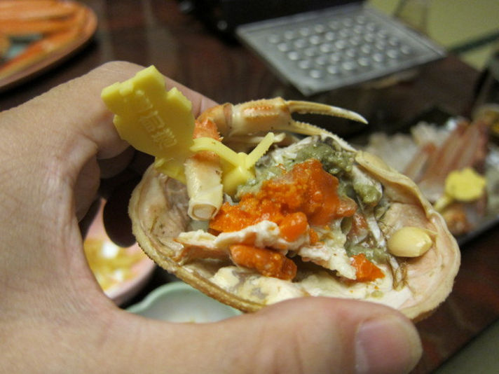 まずはセコガニをいただきます。 これは左の写真のように料理してあると食べやすいので、かなり美味しいです。 ウチコが絶品です。