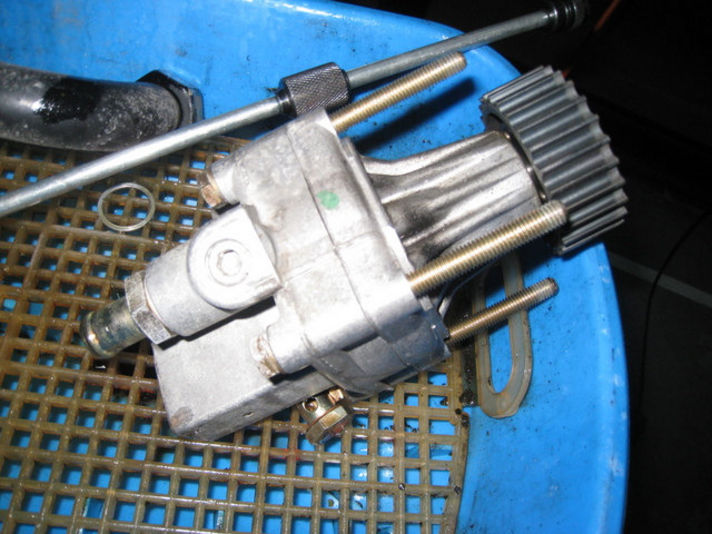 ポンプマウント&ポンプを取り外しました、ポンプを分解してOリングシャフトシールを交換します。ポンプの機能自体には問題なしです!