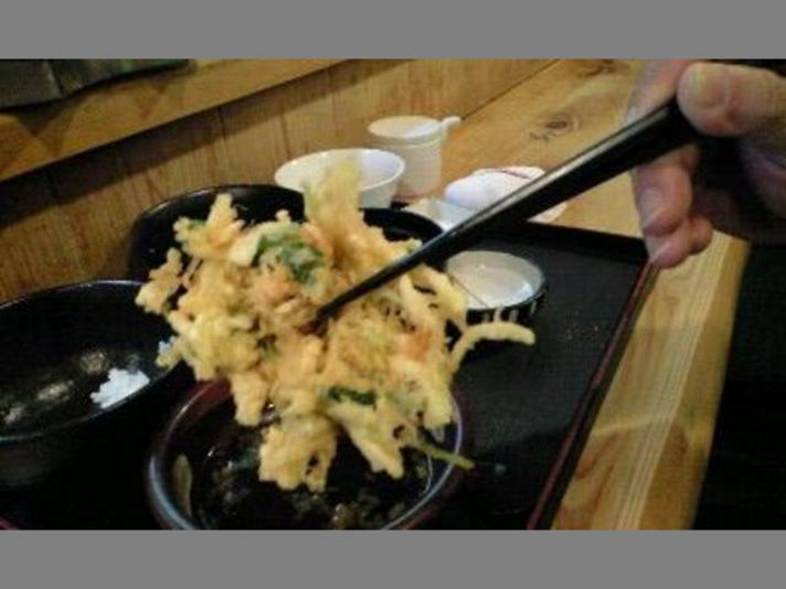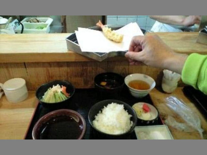 行ってみると運良く席も空いていました お目当てのコースを注文・・・ まず最初に左の写真の海老からはじまり、海鮮、野菜、いろいろな素材が順番にでてきます。 真ん中の写真のかきあげは小エビもホタテも入り、さっくりと軽くあがっています。 全部で11種類、12品・・・・ 私が感動したのが、最後のシメの一品が海老で終わると言うところ・・・