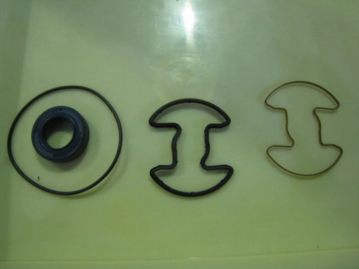 中央写真の部品を交換していきます、シャフトシールやOリング、整形された内部のオイルシールなどです。