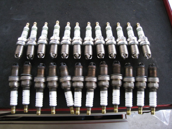 シリンダーヘッドに各二本のツインプラグです・・・新車時から一度も交換されていないようです。新しいスパークプラグできちっと完全燃焼してもらいましょう・・・プラグコードクランプも熱で硬くなり破損しています、きちっと綺麗にコードが整列しました。”クレヨンいとう”